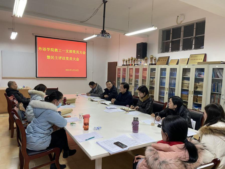 1月13日下午,外语学院教工第一党支部在6107会议室召开组织生活会暨民主评议党员工作会议,学校党委副书记胡波作为普通党员全程参与会议,会议由教工第一党支部书记陈玉平主持。