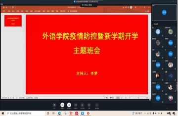此次线上班会进一步明确了新学期工作安排,为进一步强化疫情防控教育、线上学习纪律,树立良好的学风等方面起到了积极的促进作用。