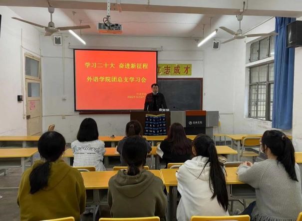 梁博文首先带领全体学生领学了党的二十大报告,并提出要把学习宣传贯彻党的二十大精神,作为当前和今后一个时期的首要政治任务,作为青年团员,要坚持学原文、悟原理,精学细悟,迅速掀起全员学习的广泛热潮。同时强调了以习近平同志为核心的党中央标定了青年工作的战略高度,为青年创造出良好的生长环境,所以作为新青年,更要高举伟大旗帜,聚焦主责主业,为成为新时代杰出青年而不断向前,不断努力。