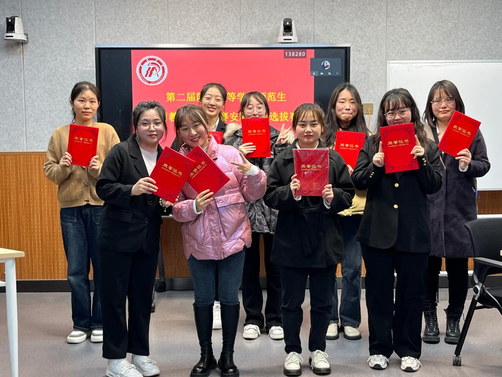 最终张佳锐 、杨佳瑶、徐艳、薛锦萍四位选手顺利进入决赛。评委老师为获奖参赛选手颁发了荣誉证书,并表达了对他们的殷切期望。至此,第二届师范生教学技能大赛圆满落幕。师范生技能比赛对于每一个师范生来说都意义非凡:有利于师范生锻炼自己的教学技能,积累教学实践经验,提高个人素质及教学能力,对其未来的发展有着巨大的帮助。此次比赛更是为学生们提供了一个学以致用的实践和交流平台。以赛带练、以赛促练、以赛促教,营造了永利官网良好的师范生教育教学实践氛围,也提高了永利官网师范生从师任教的专业水平。
