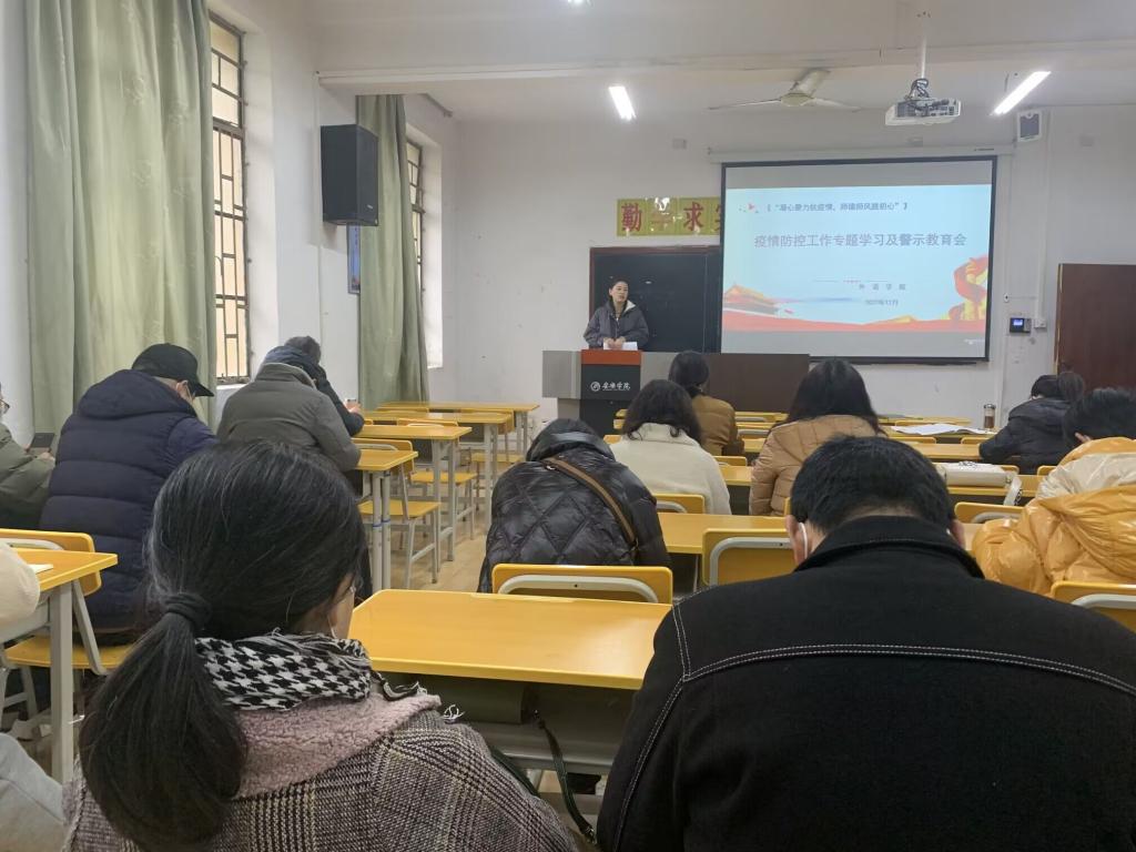 会上,院党总支书记肖红香传达了学校《关于开展“凝心聚力抗疫情,师德师风践初心”专题学习教育活动的通知》精神及有关要求,领学了习近平总书记关于疫情防控工作的重要指示精神,就近期违反疫情防控的典型案例和疫情防控工作失职失责问题做了通报。