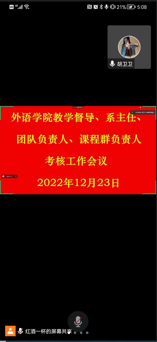 12月23日,永利集团3044欢迎光临线上召开教学督导、系主任、教学团队、课程群2022年度工作考核会议,学院领导班子、纪检委员、教学督导及各岗位负责人员参加了会议,会议由教学副院长胡卫卫主持。