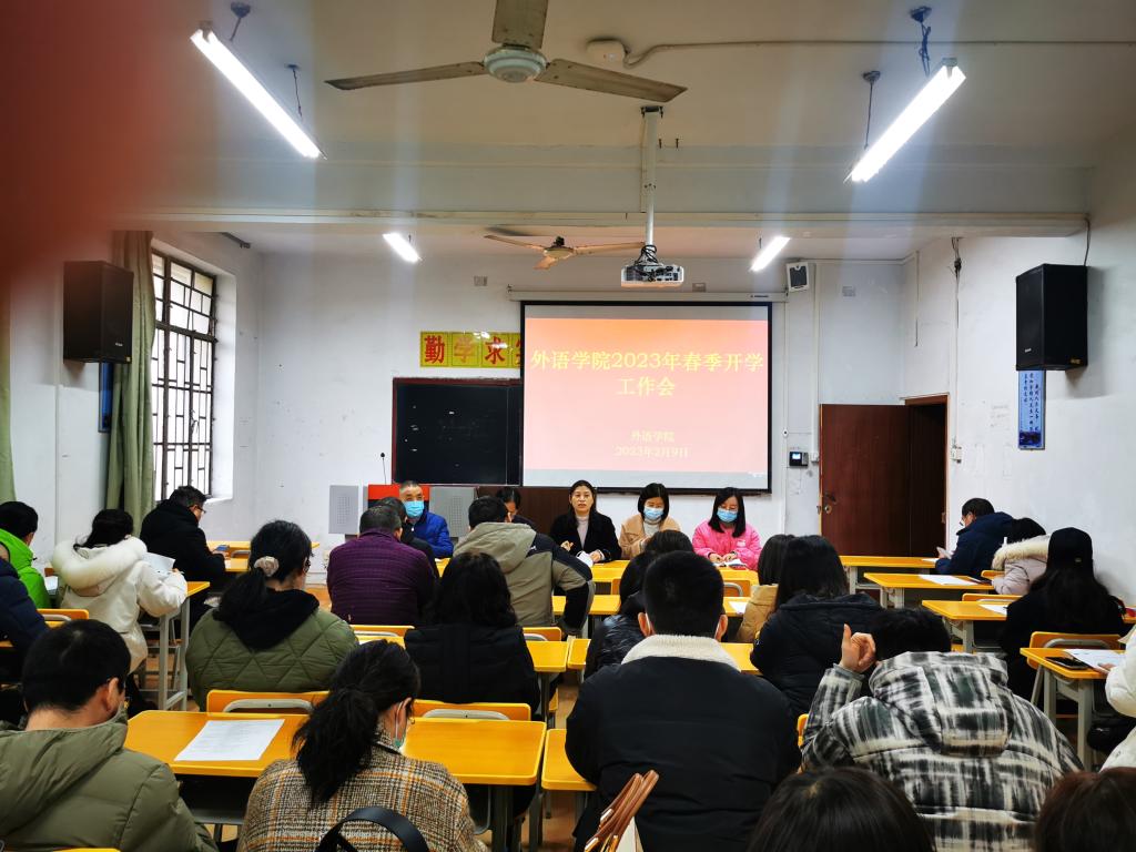 会上,院长张哲华首先通报了2022年底学院奖励绩效分配情况和第四轮岗位聘期任务完成自查情况,随后向全院教职工作了新学年报告,他回顾了2022年学院在党建工作、人才队伍建设、专业建设与教学工作、人才培养成效、教科研工作、信息宣传、服务地方等各项工作取得的成绩、工作经验以及存在的问题与努力方向。针对2023年学院发展目标任务,张哲华从十一个方面进行了安排部署:一是全面加强党对教育事业的领导,坚定拥护“两个确立”、坚决做到“两个维护”,加强学院班子建设;二是加强党建工作,发挥教师学生支部示范引领作用;三是继续把师资队伍建设作为学院的首要工作来抓;四是强力推进英语师范专业认证工作;五是加强商务英语专业建设,稳固现有实习就业基地,积极拓展新基地;六是全面实现教育教学有序内涵发展,提高教育教学质量;七是加强教学督导组、系(教研室)、教学团队、课程群建设,发挥其应有作用;八是统筹谋划科研工作,努力提高学术科研水平;九是超前谋划,加强标志性人才培养成果建设;十是加强留学生的教育培养与管理工作;十一是强化内部管理,健全管理机制,加强执行,提质增效。