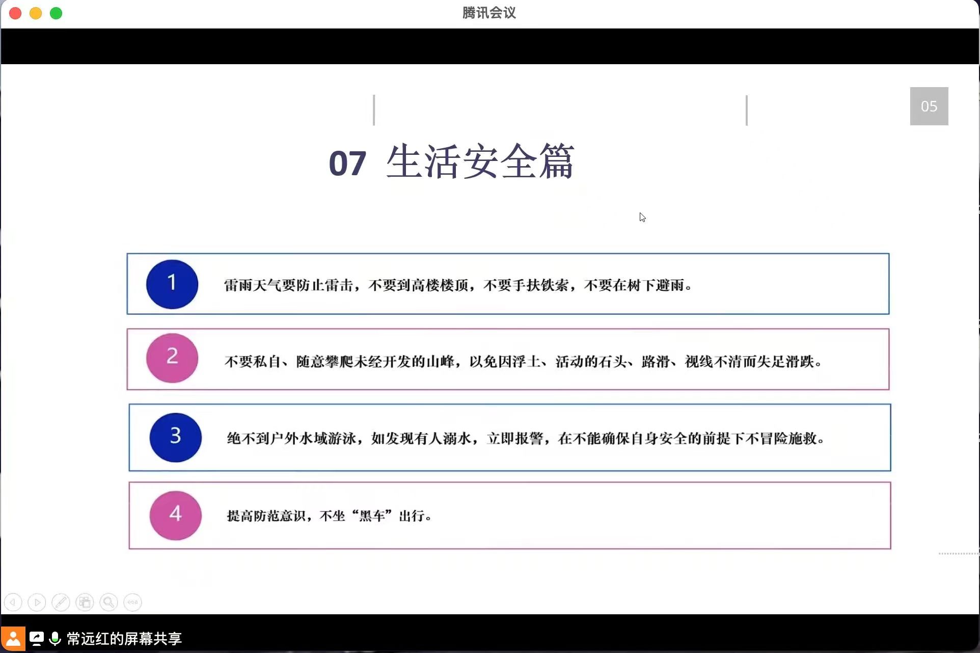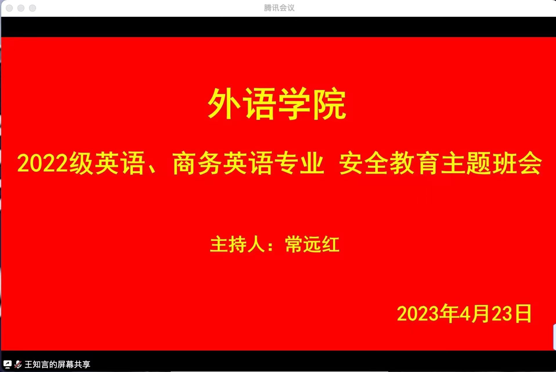 为了增强永利集团3044欢迎光临大学生的安全防范意识,2023年4月23日晚上七点半,辅导员常老师通过腾讯会议召开了以“安全教育”为主题的班会,永利集团3044欢迎光临22级学生全员参与其中,本次班会开展的十分顺利。