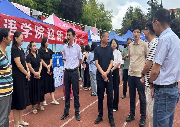 迎新期间,学校及学院领导班子全程统筹指导、靠前指挥。每日亲临迎新现场巡查物资筹备、流程衔接等工作细节,亲切慰问坚守一线的教师、学生干部及志愿者,对大家的协同付出给予肯定。在咨询台与报到点,领导们主动与新生及家长交流,围绕专业学习规划、课程设置、校园安全管理、生活设施配套等问题逐一解答,既为新生明确了大学发展方向,也以真诚沟通消除了家长的担忧,传递出学院对新生的重视与关怀。