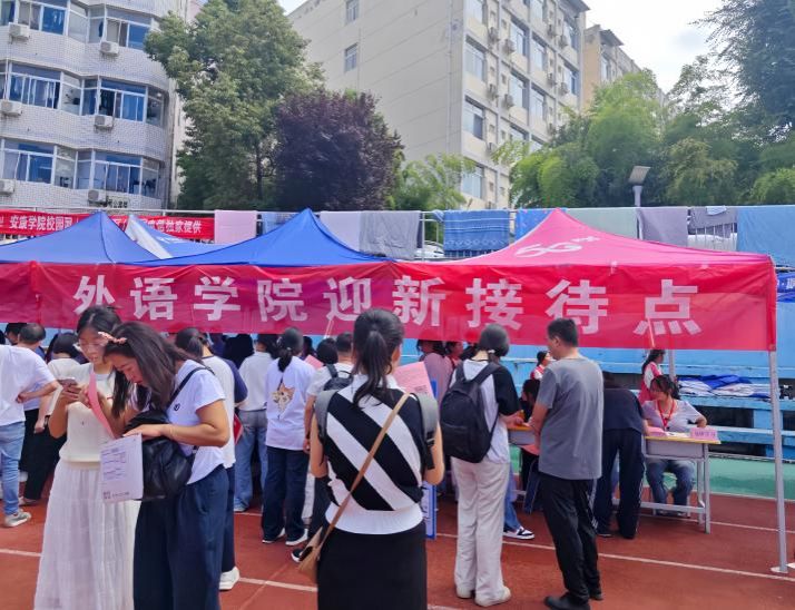 为保障迎新工作有序推进,学院提前制定详细方案,实现分工明确、流程闭环。现场科学划分信息核对、材料提交、校园卡办理、宿舍分配等专属区域,每个环节均配备经验丰富的教师与学生干部协同引导办理;身着统一服装的志愿者队伍活跃在校园各处,主动为新生搬运行李、指引路线,耐心解答“报到材料清单”“宿舍位置”“校园设施使用”等高频问题,以实际行动彰显“外院温度”。
